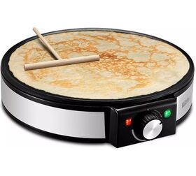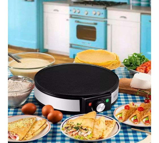Блинницу не нужно устанавливать на плиту, поэтому можно готовить на любой удобной ровной поверхности, устойчивой к высоким температурам. С помощью палочки для распределения теста блин получается идеально ровной.