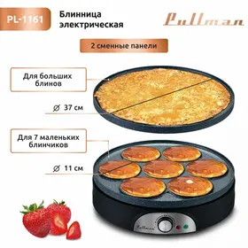 керамическое антипригарное покрытие; в комплекте: пластиковые шпатель, лопатка; индикатор нагрева и сети, регулировка температуры; длина кабеля 75 см