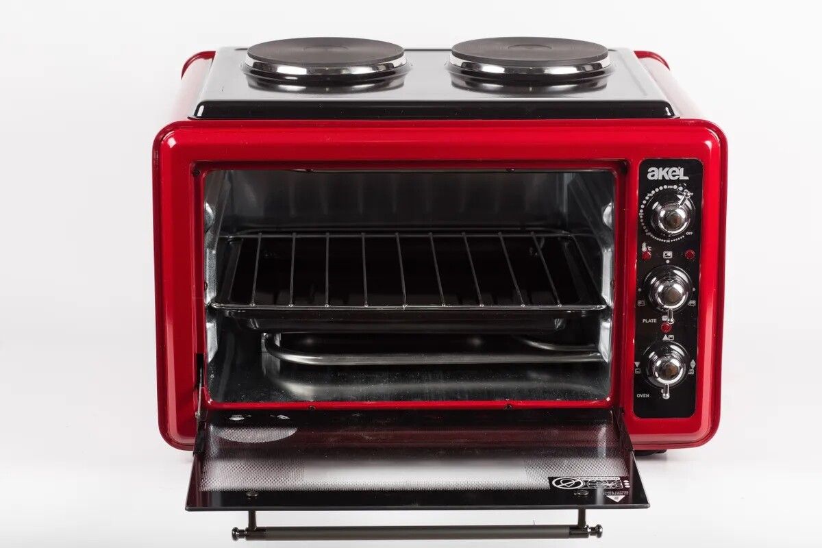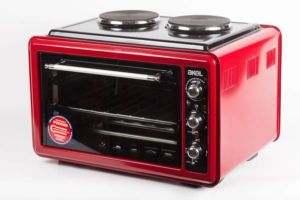 * Производитель: Akel * Цвет: красный * Тип прибора: мини-печь * Внутренний объем: 36л * Максимальная мощность: 3300Вт * Количество конфорок: 2 * Максимальная температура: 250°С * Количество режимов работы: 3 * Конвекция: Нет * Гриль: Нет * Вертел: Нет * Внутреннее покрытие камеры: эмаль * Открытие двери: откидное * Управление: механическое * Дисплей: Нет * Таймер: Да * Максимальное время таймера: 60мин * Особенности: защита от перегрева индикатор работы подсветка камеры ручка с защитой от нагревания термоизолированый корпус функция разогрева * Комплектация: круглый противень прорезиненные ножки противень решетка * Ширина: 60см * Глубина: 30см * Высота: 44см * Вес: 11.5кг