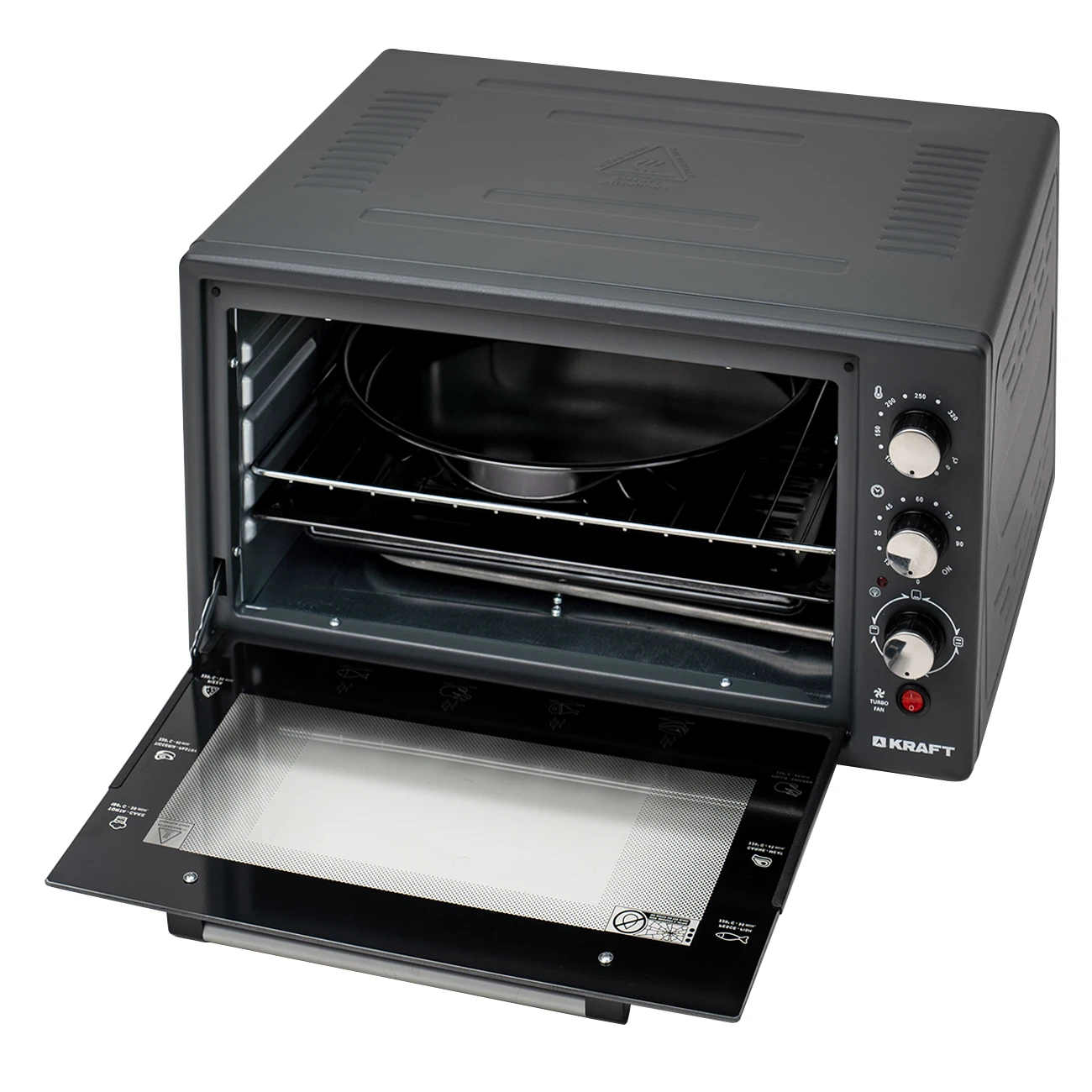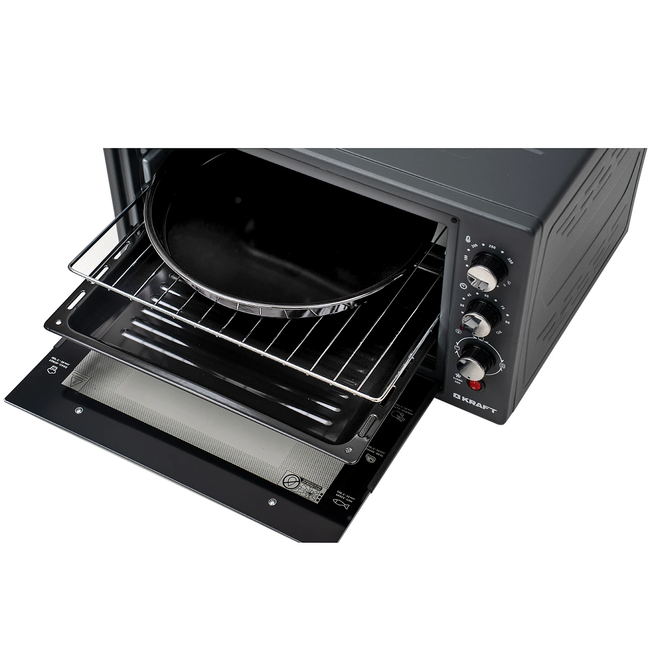 Компактная электрическая мини-печь Kraft KF-MO 3802 DGR позволяет готовить различные блюда быстро и удобно. Объем мини-печи составляет 38 литров. Мощность устройства 1500 Вт. В печи предусмотрено 3 стандартных режима нагрева – нижний, верхний и двухсторонний. Режим конвекции включается отдельно с каждым режимом нагрева. Температура приготовления регулируется в диапазоне от 50 °C до 320 °C. Также имеется таймер обратного отсчета на 90 минут.