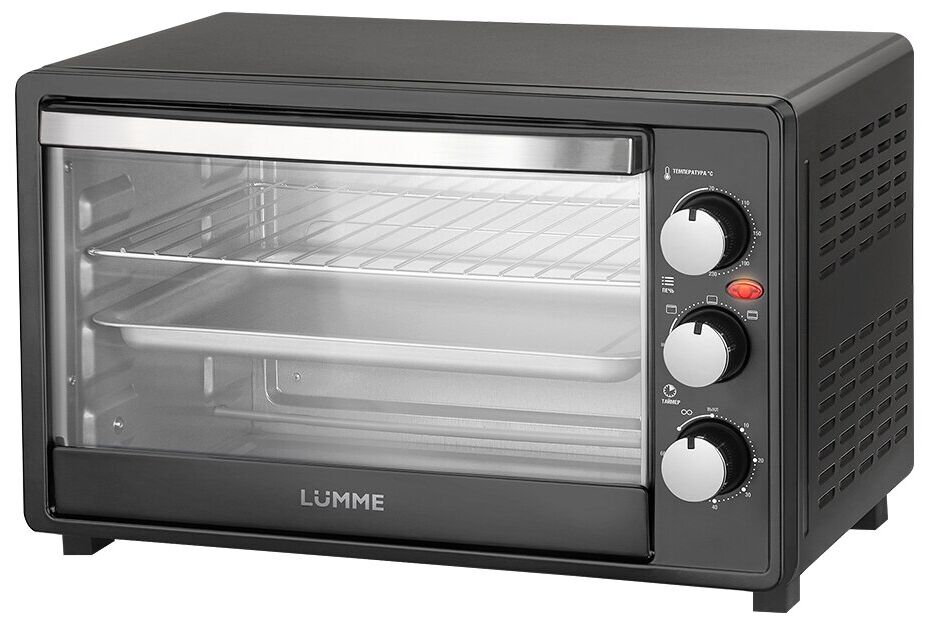 сигнал об окончании приготовления, дверца из закаленного стекла, световой индикатор работы; количество противней в комплекте: 1