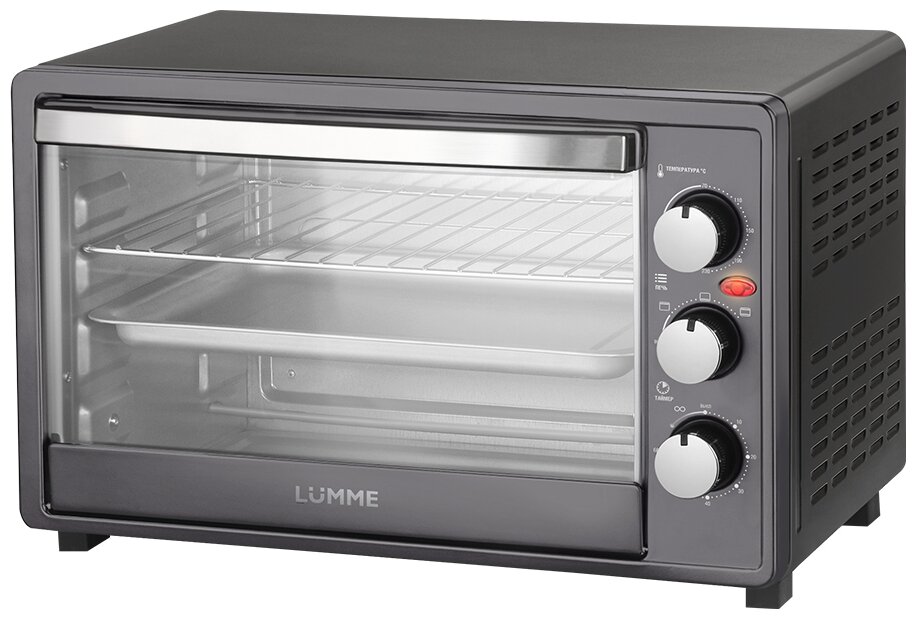 сигнал об окончании приготовления, дверца из закаленного стекла, световой индикатор работы; количество противней в комплекте: 1