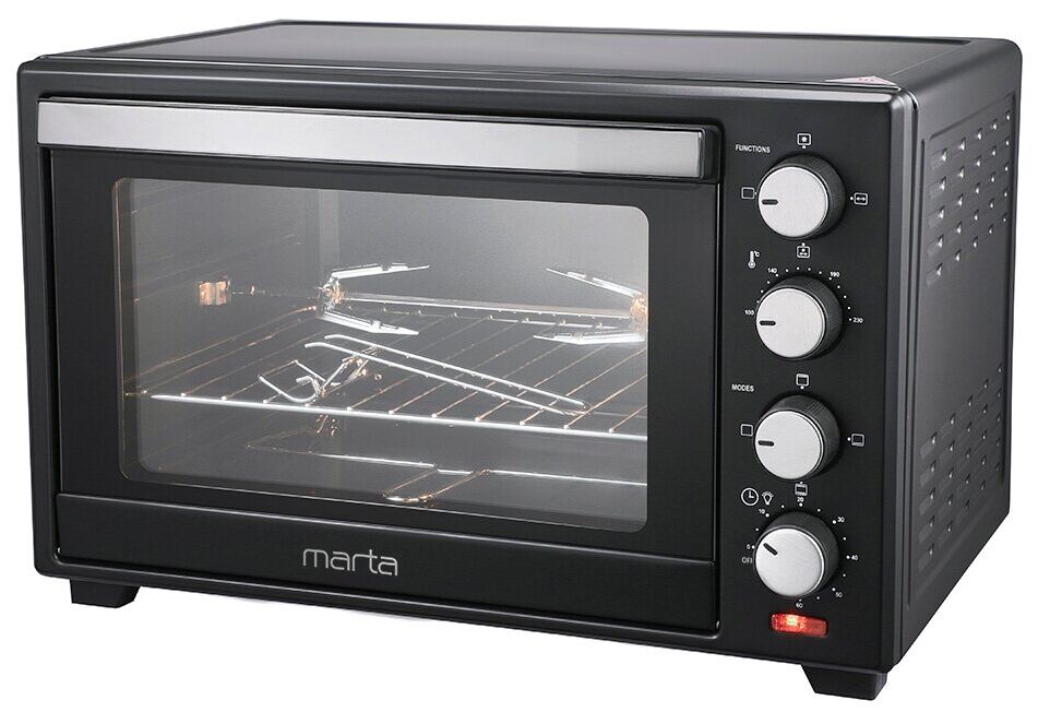 сигнал об окончании приготовления, автоматическое выключение, дверца с двойным стеклом; в комплекте шашлычница, ручка ручка для вертела; количество противней в комплекте: 1