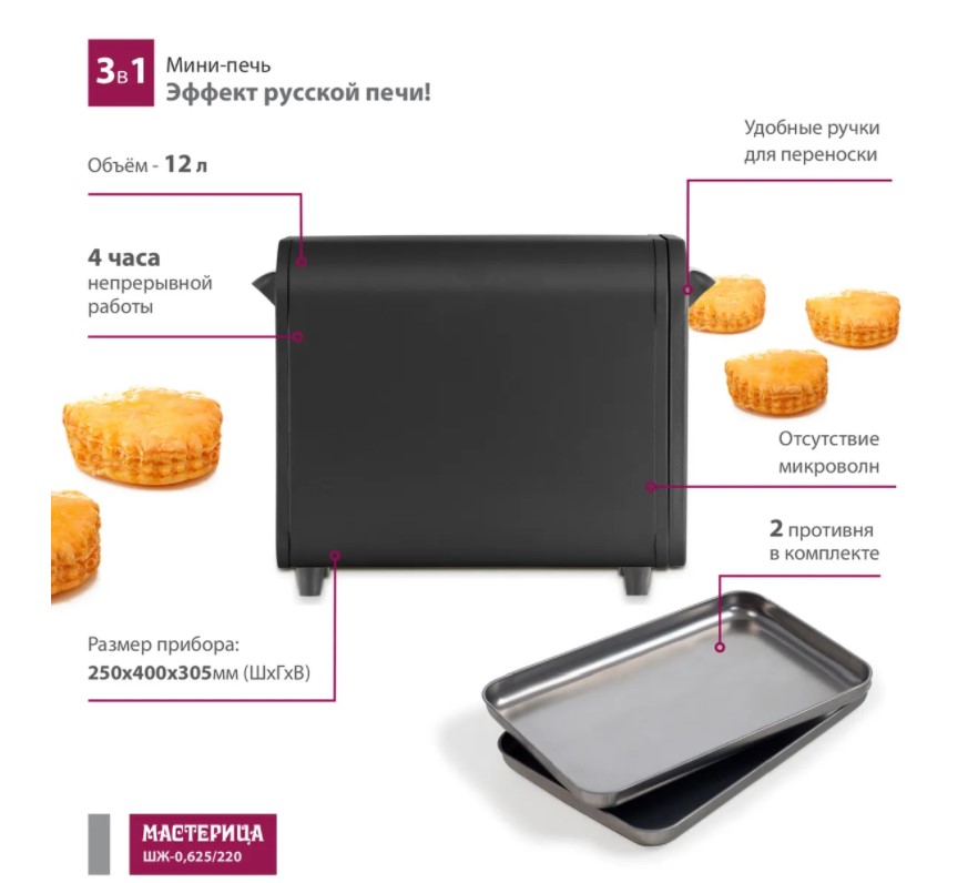 Мини печь МАСТЕРИЦА ШЖ-0,625/220 Черный