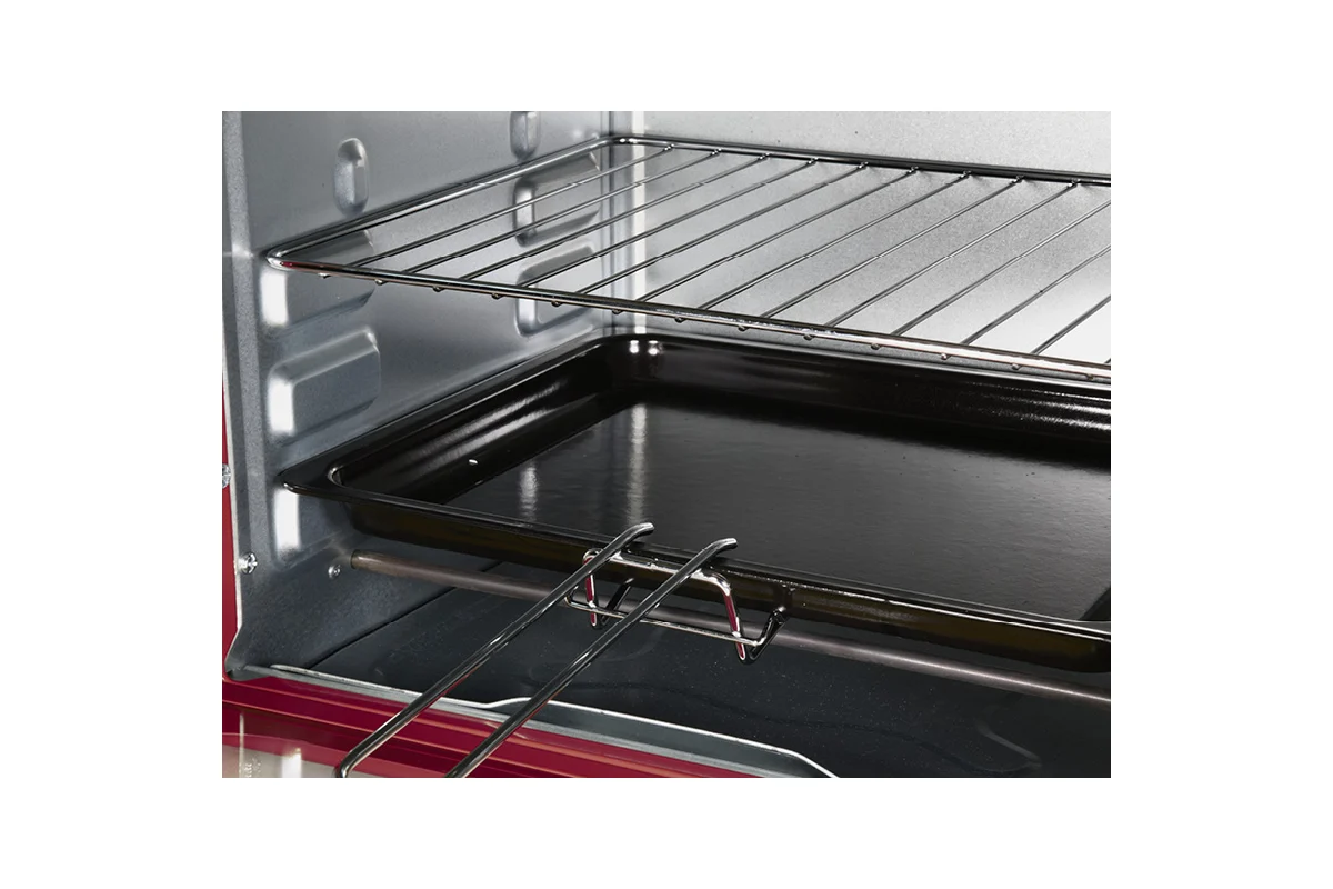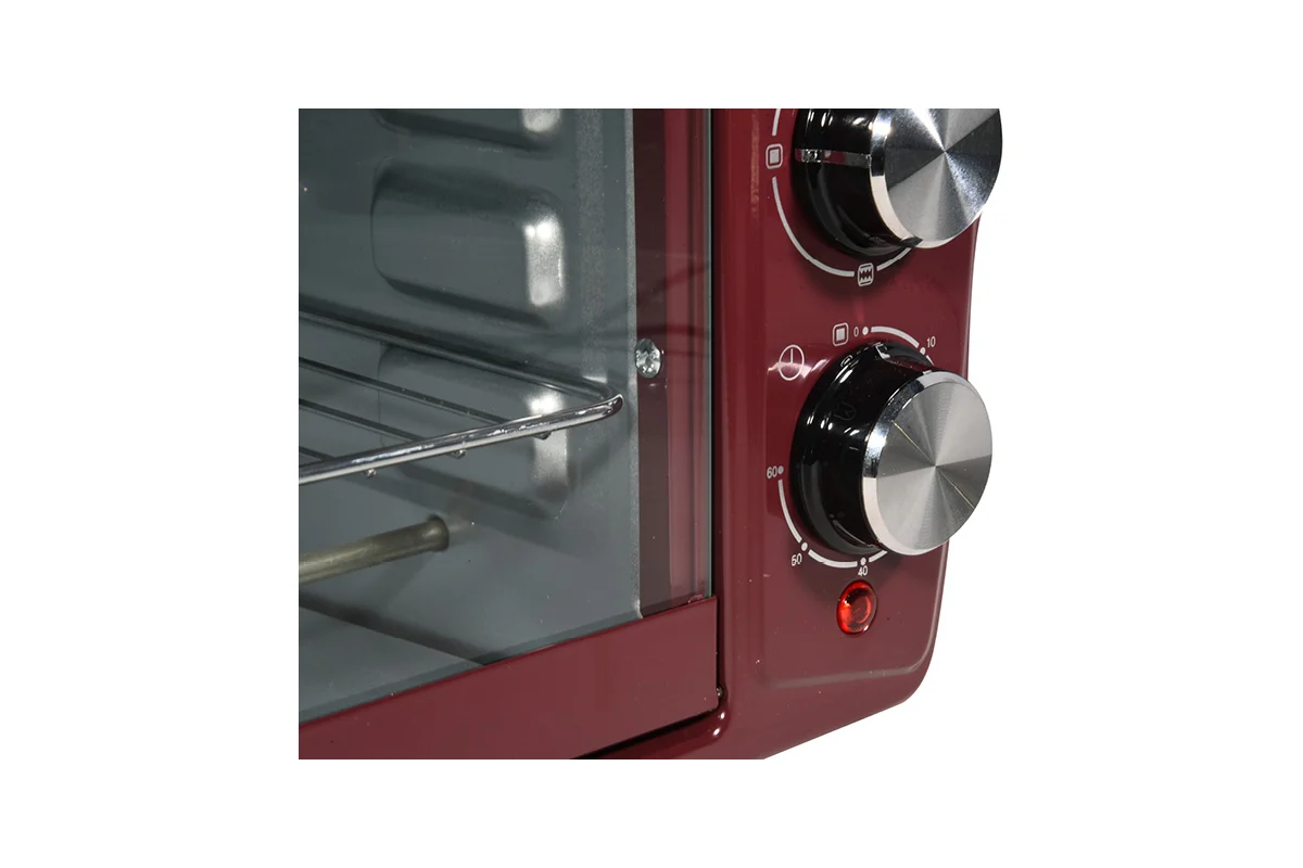 Мини-духовка оснащена четырьмя нагревательными элементами. Благодаря регулировке температуры от 100 до 250 градусов и трем режимам работы можно приготовить любое блюдо: от аппетитных куриных ножек с хрустящей корочкой до вкусного ароматного пирога к чаю.