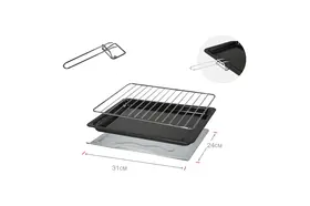 В комплекте есть эмалированный противень, решетка, поддон для крошек и ручка для решетки.