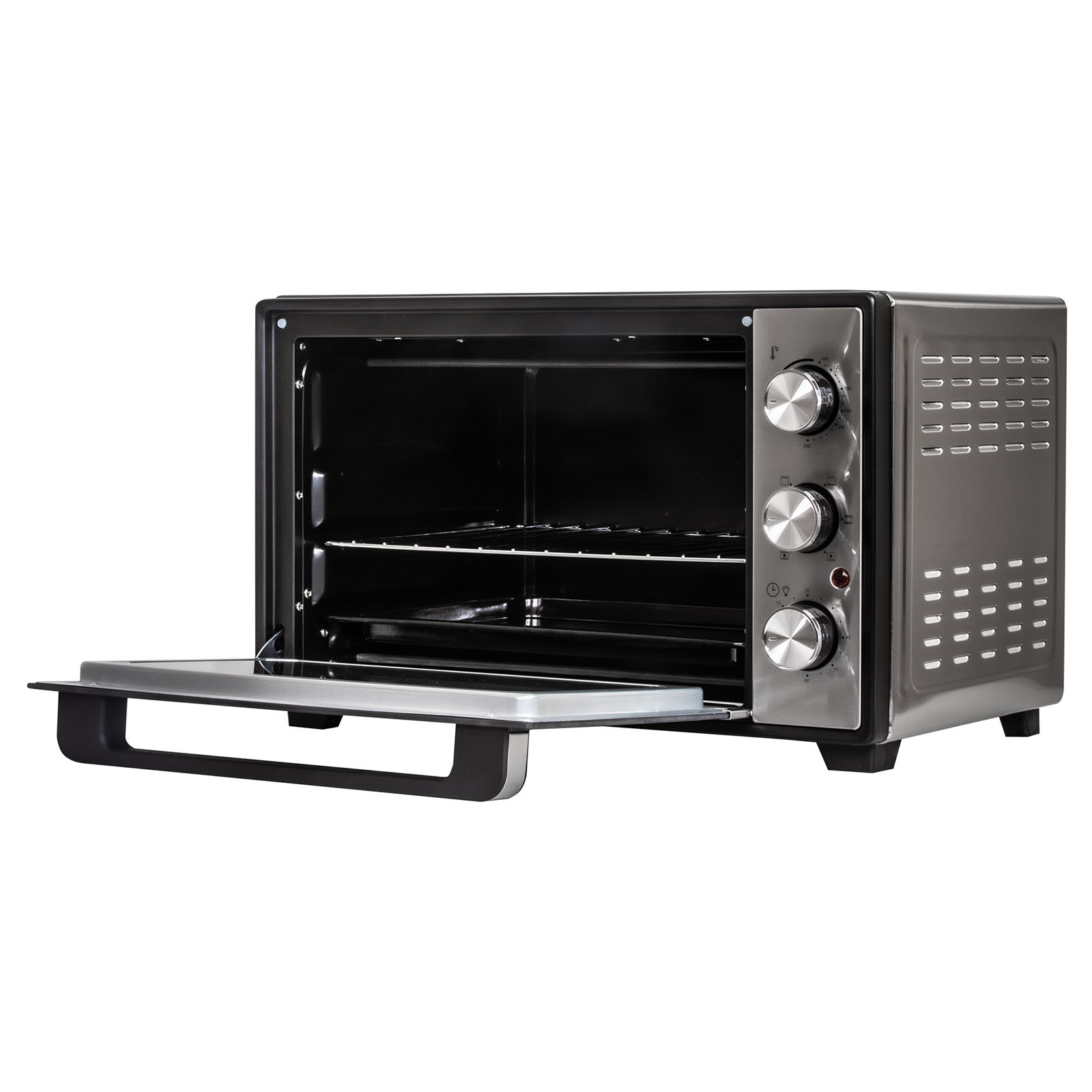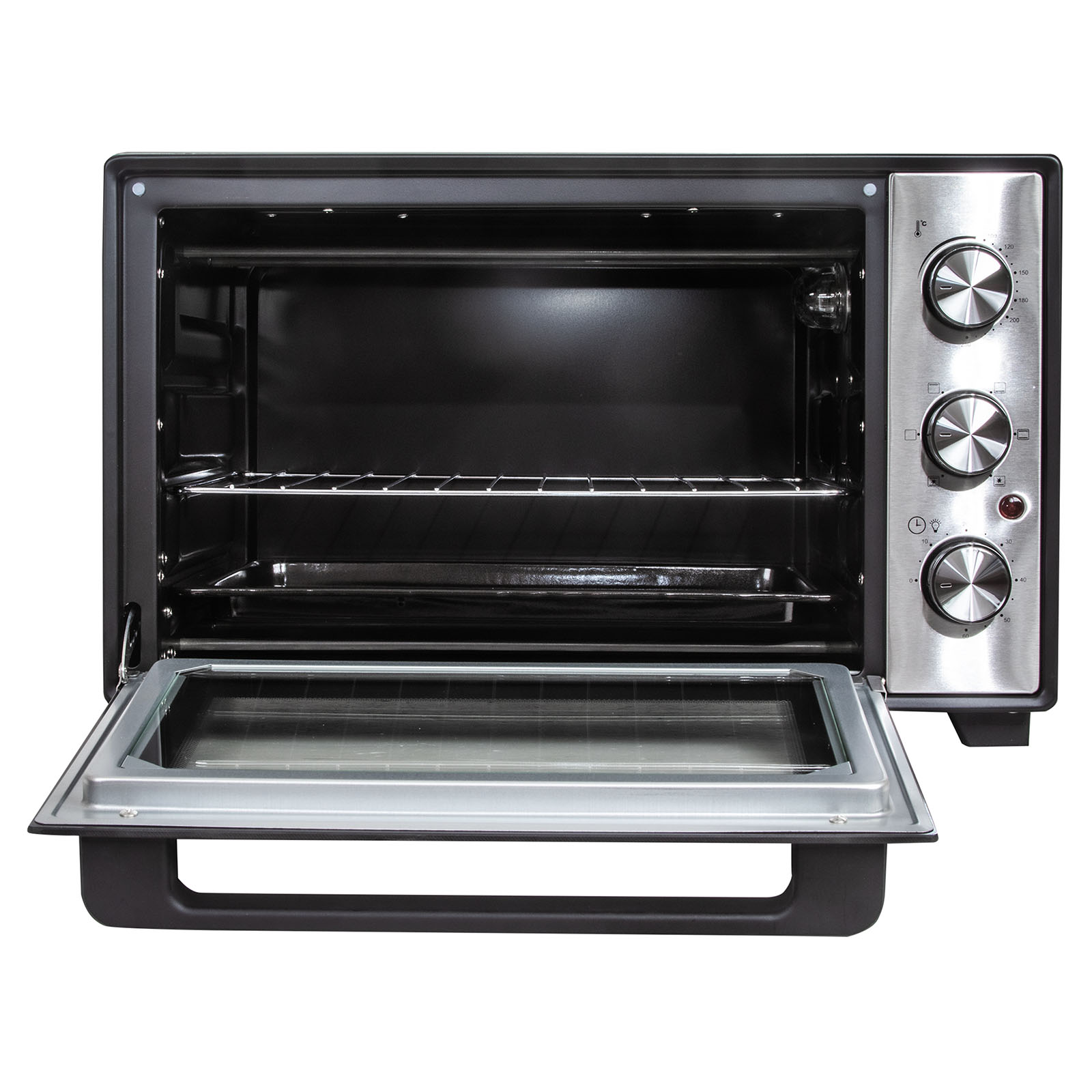 Комплектация: электропечь, металлическая решетка, плоский противень, ухват для противня, инструкция на русском языке