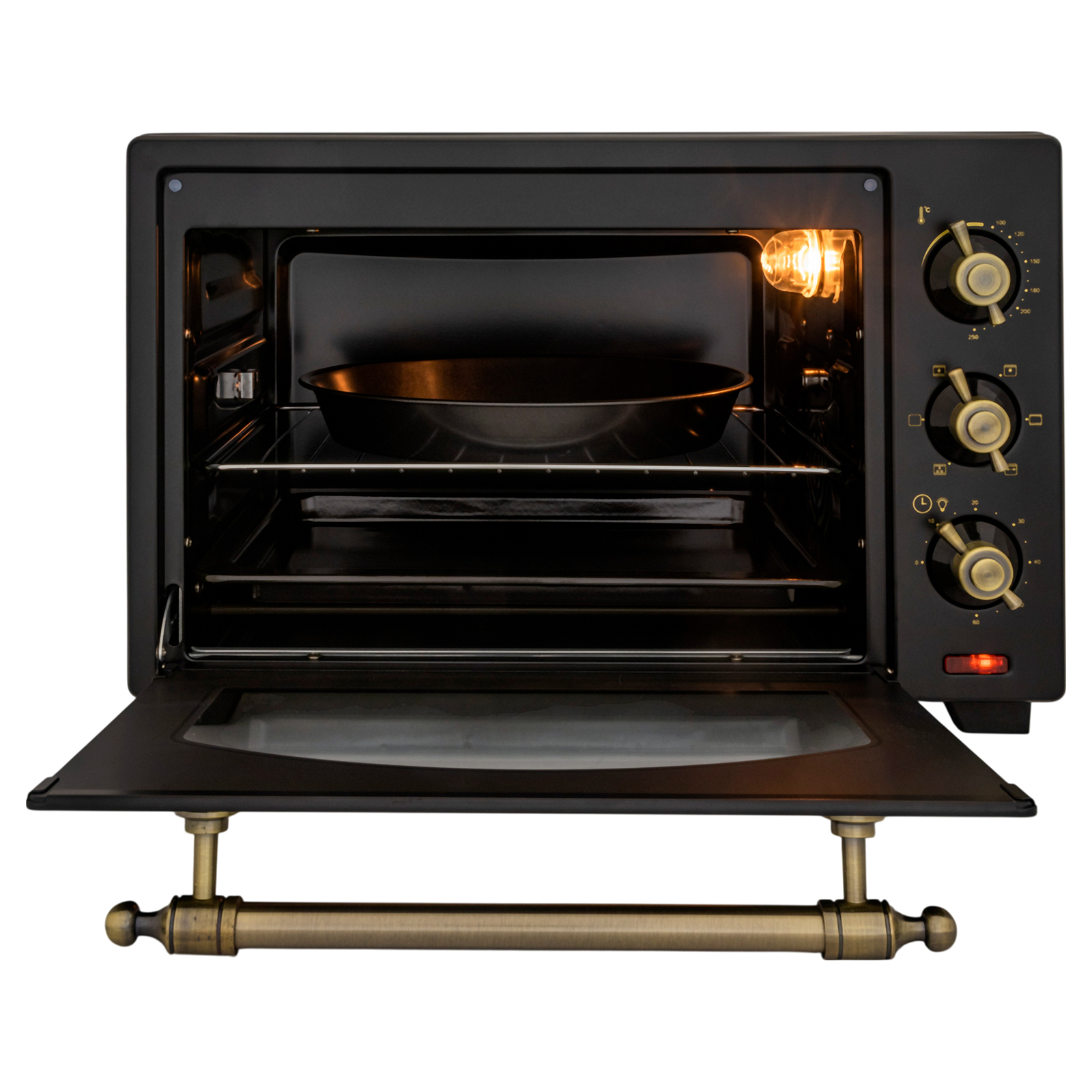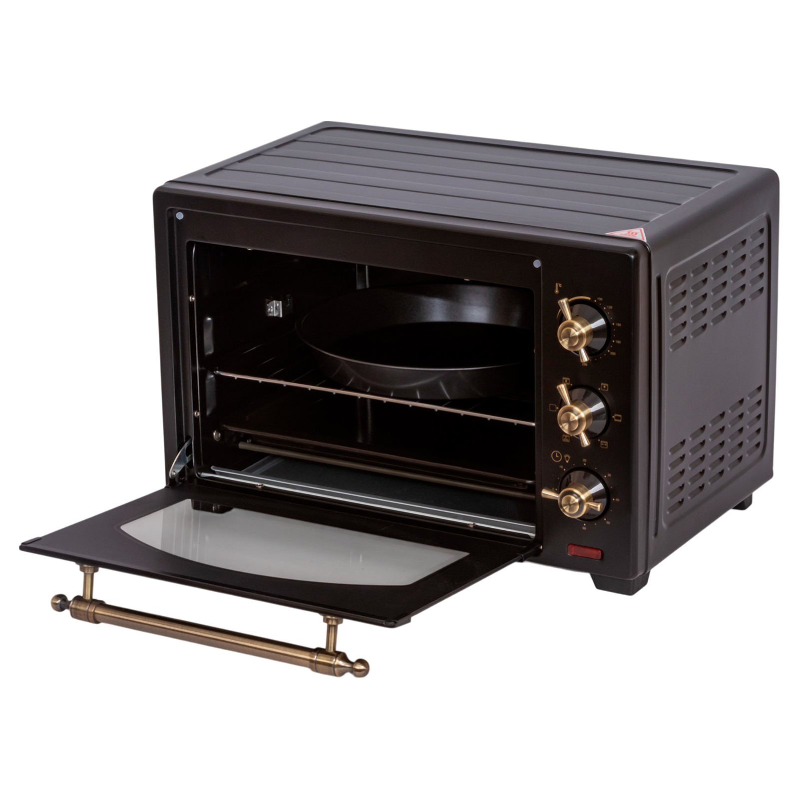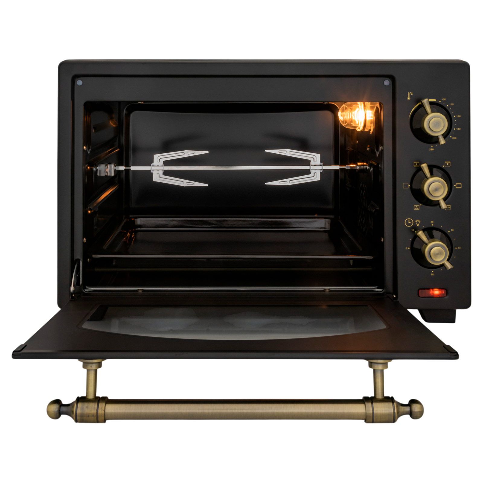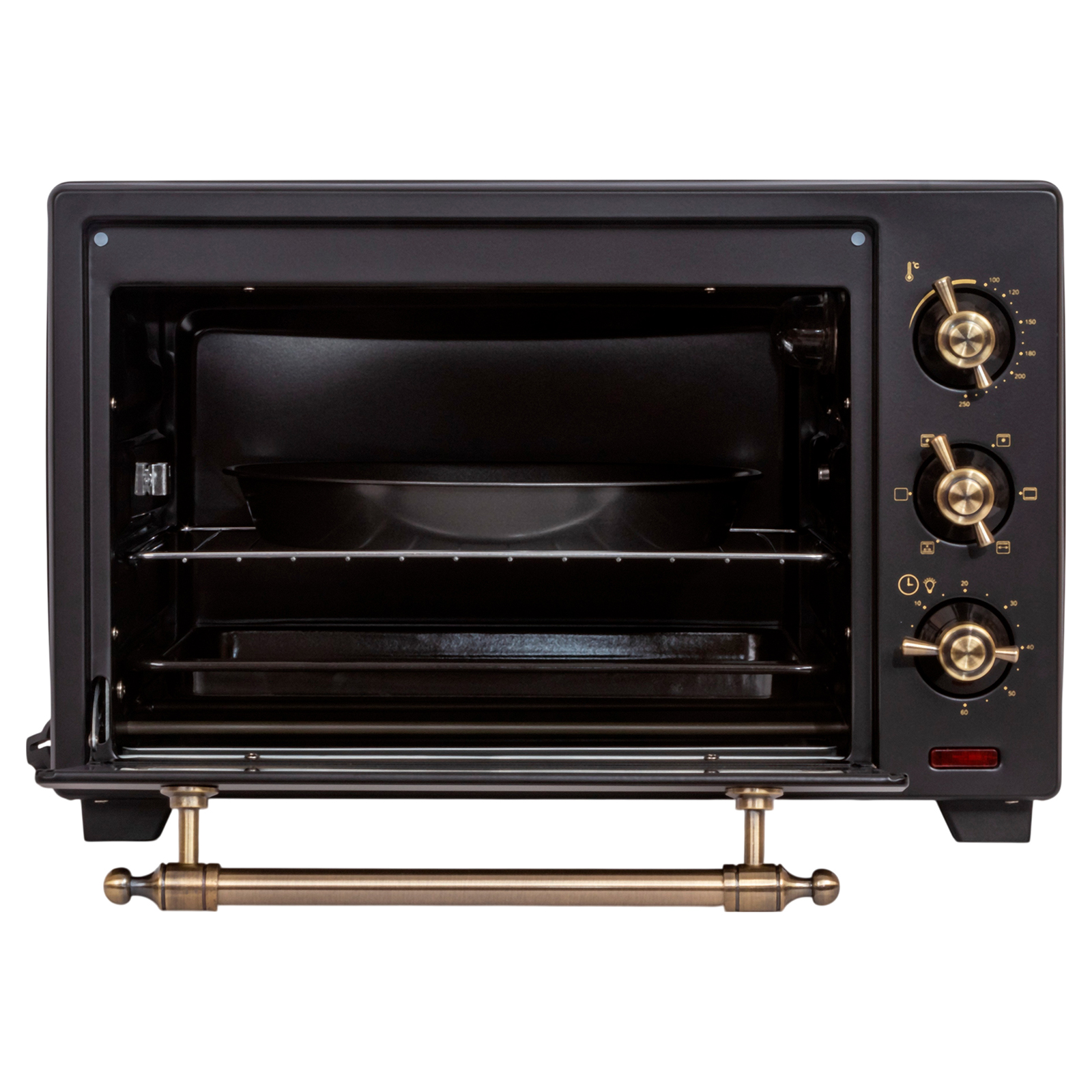 Комплектация: электропечь, решетка, поддон для запекания, ухват для поддона, вертел, держатель для вертела, поддон для крошек, форма для пиццы, инструкция на русском языке