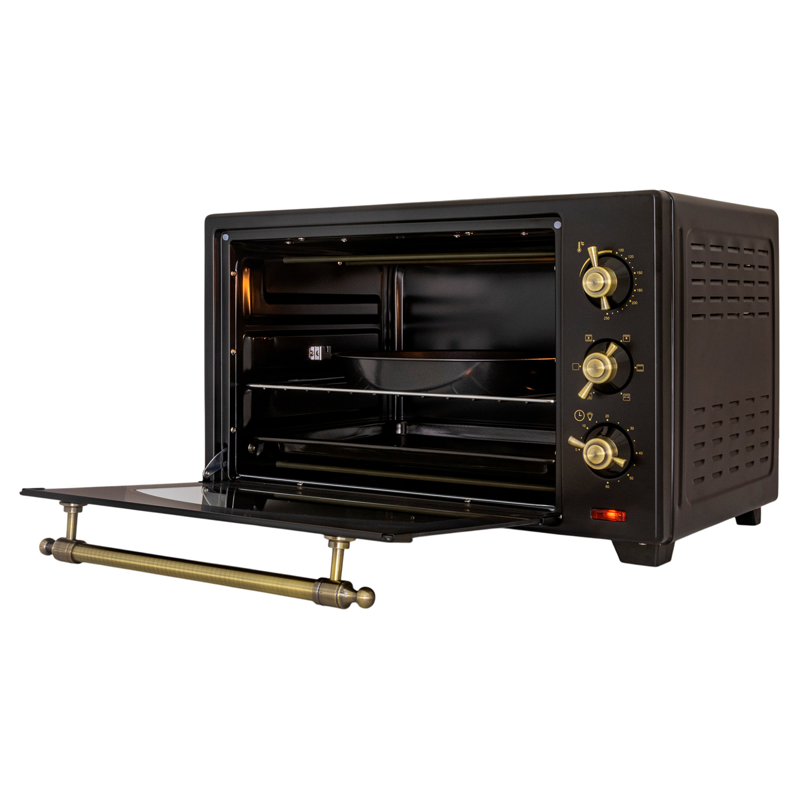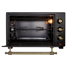 Комплектация: электропечь, решетка, противень для запекания, ухват для поддона, вертел, держатель для вертела, поддон для крошек, форма для пиццы,инструкция на русском языке