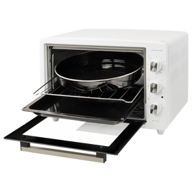 Электрическая мини-печь выполняет все функции духового шкафа, и при этом не занимает много места на кухне. Подходит как для разогрева еды, так и для приготовления полноценных блюд на всю семью. РЕГУЛИРОВКА ВРЕМЕНИ И ТЕМПЕРАТУРЫ Вы можете настроить нужную температуру и время приготовления. Блюдо не пригорит, так как таймер отключит печь в заданное время. ВОЗМОЖНОСТЬ НАБЛЮДАТЬ ЗА ПРОЦЕССОМ ПРИГОТОВЛЕНИЯ Прозрачное стекло дверцы и внутренняя подсветка дают возможность видеть, что происходит внутри печи во время приготовления блюда. РЕГУЛИРОВКА РЕЖИМА РАБОТЫ В зависимости от вида задачи, Вы можете выбрать один из вариантов режима работы мини -печи: верхний нагрев, нижний нагрев, верхний + нижний нагревы), в зависимости от выбранной задачи. В комплект входит противень с антипригарным покрытием, хромированная решётка; количество противней в комплекте: 2