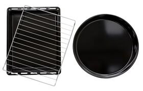 Инструкция по эксплуатации; стандартный противень с антипригарным покрытием; хромированная решётка; круглый противень с антипригарным покрытием
