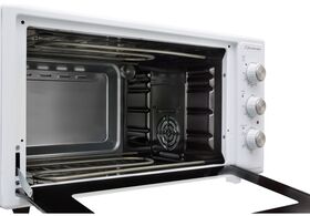 Объём мини-печи 50 литров, мощность 1600 Вт. Внутреннее покрытие камеры выполнено из эмали легкой очистки Easy Clean