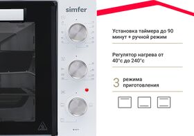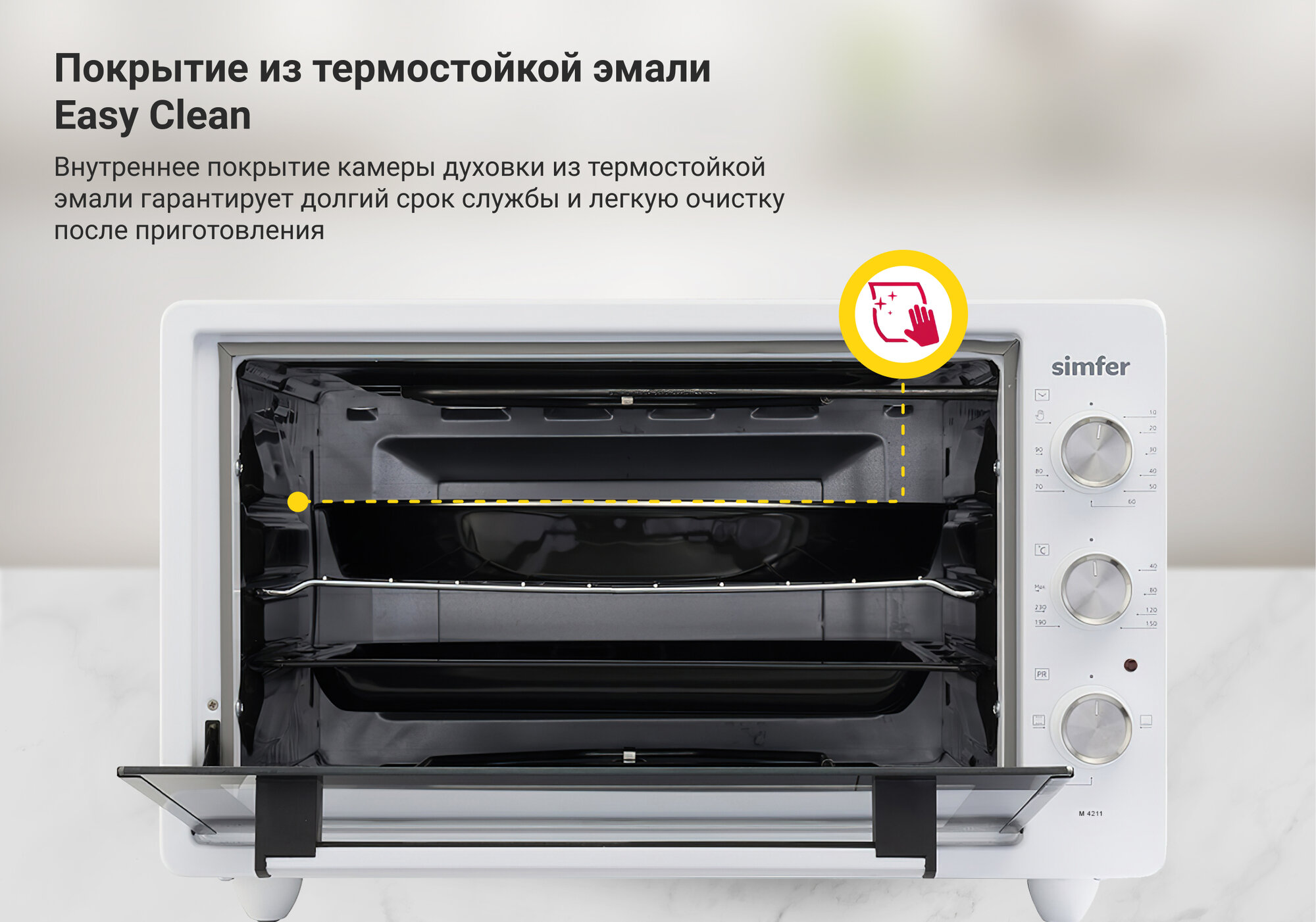 Благодаря трём режимам работы – нижний нагрев, верхний нагрев и комбинированный (нижний + верхний нагрев) – Simfer M4211 предоставляет полный контроль за процессом приготовления, позволяя точно настроить тепловой режим для каждого конкретного блюда. Это означает, что вы можете экспериментировать с различными кулинарными техниками и рецептами.