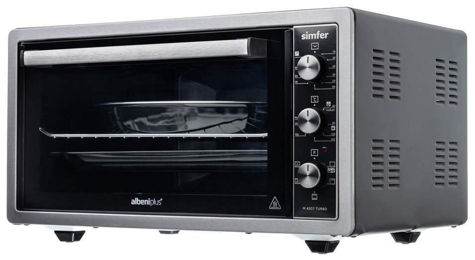 7 режимов работы: верхний нагрев, верхний+нижний нагрев, нижний нагрев, верхний + нижний нагрев + конвекция, нижний нагрев+конвекция, очистка духовки, режим йогурт; в комплекте стандартный противень, круглый глубокий противень, хромированная решетка, инструкция, гарантийный талон; звуковой сигнал отключения, подсветка; при первом запуске рекомендуется протопить печь 45 минут при температуре 200 °C для прогорания заводской смазки; количество противней в комплекте: 2