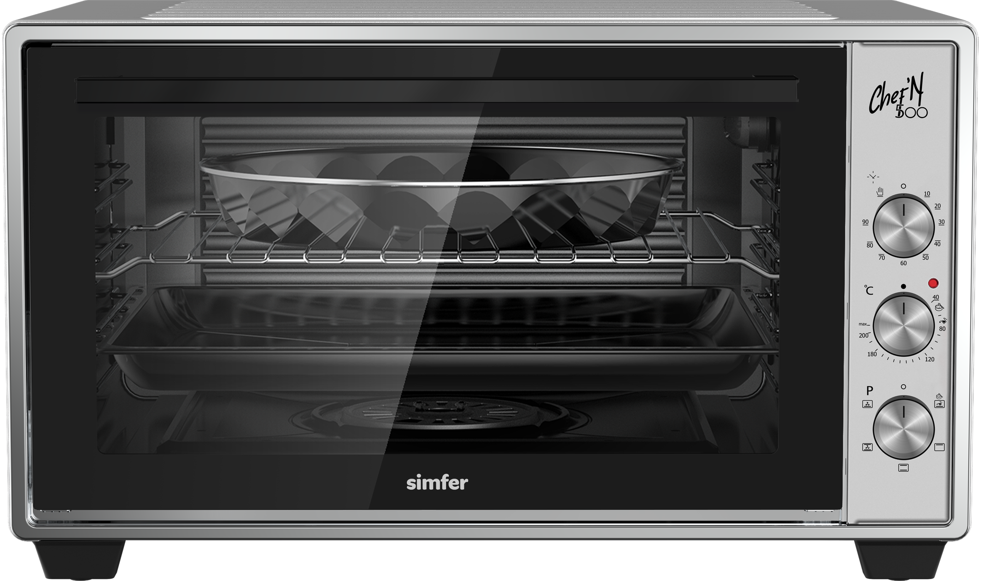 верхний нагрев, верхний нагрев + нижний нагрев, конвекция, нижний нагрев, приготовление на пару