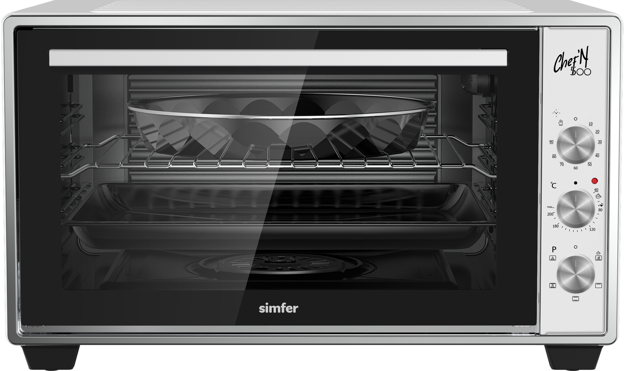 верхний нагрев, верхний нагрев + нижний нагрев, конвекция, нижний нагрев, приготовление на пару