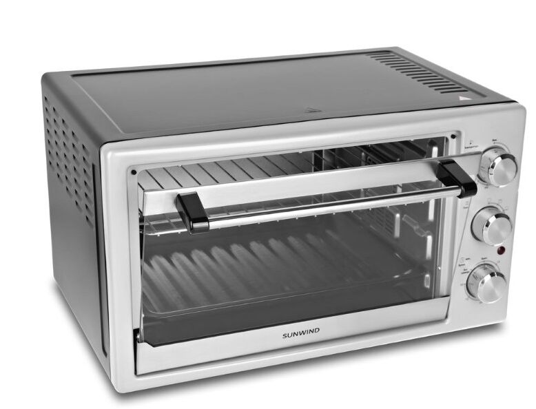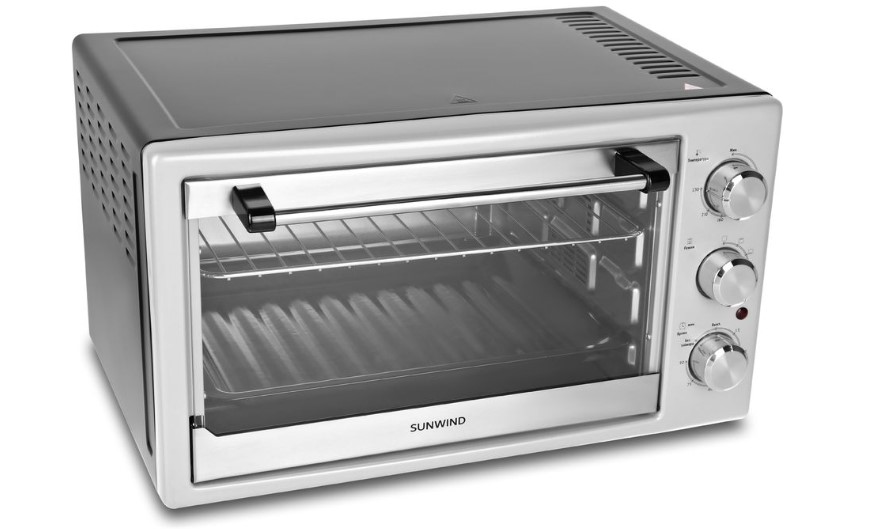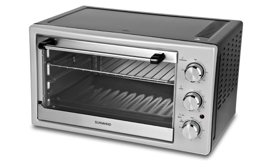 Размер противня: 398х314х30 мм, таймер до 90 мин, внутренняя подсветка, ножки с противоскользящей опорой