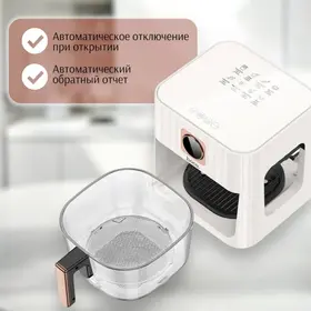 Системы защиты: Автовыключение, Ручки с защитой от жара, Термоизолированный корпус, Отключение нагрева при открытии крышки