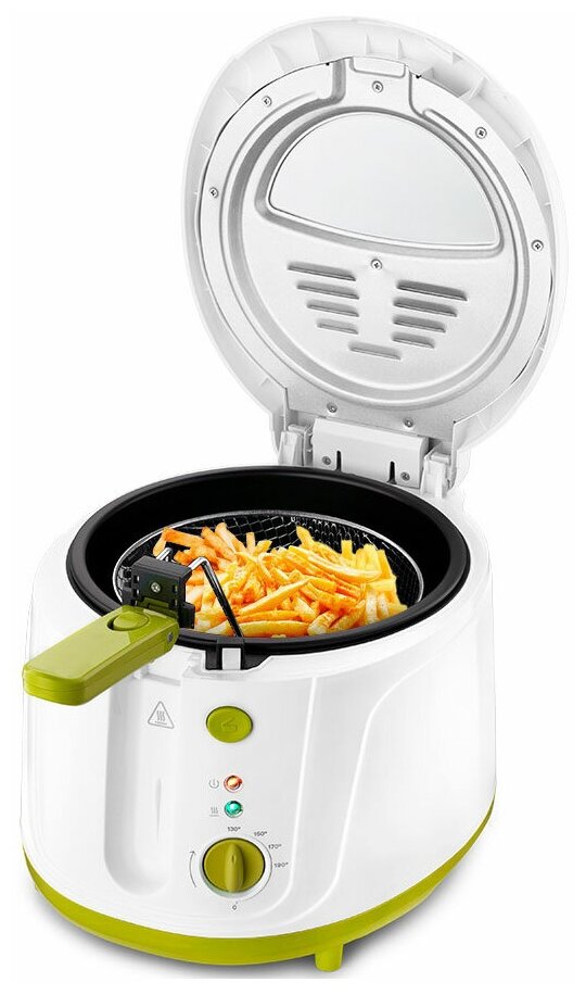 Корпус, крышка и ручка корзины выполнены из безопасной и термостойкой пластмассы. Крышка фритюрницы съёмная, что в разы облегчает очистку прибора после использования.