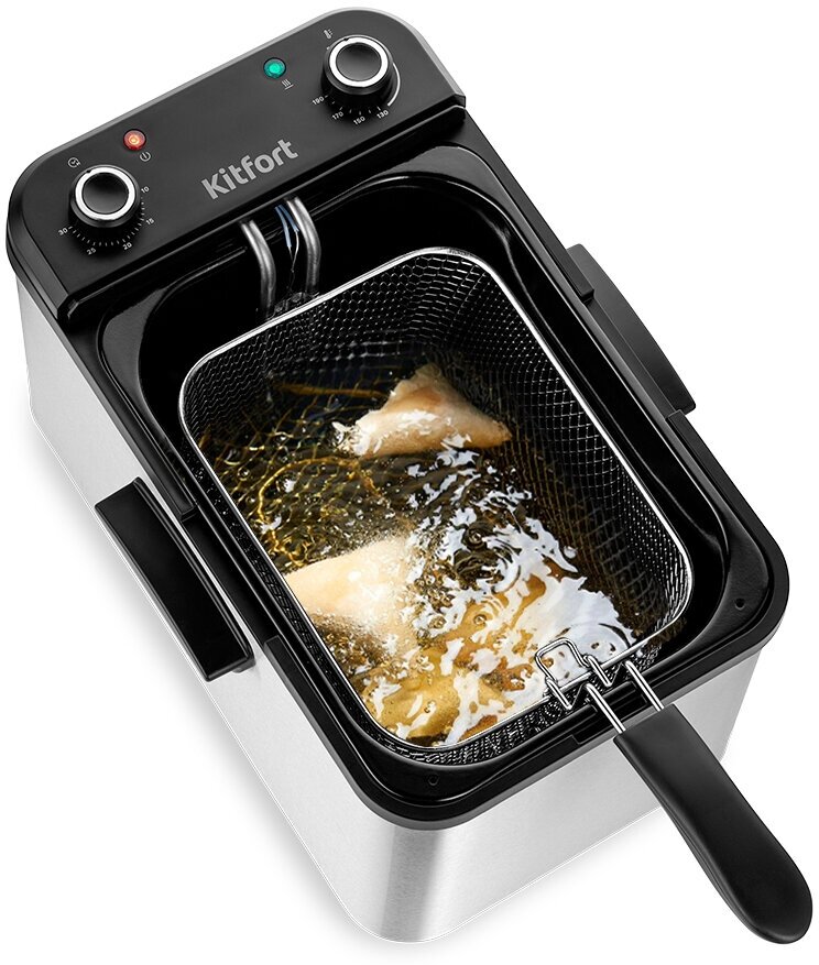 Благодаря большому объему чаши фритюрницы можно приготовить сразу 4–5 порций. С фритюрницей КТ-4077 вы без труда сможете пожарить закуски на компанию.