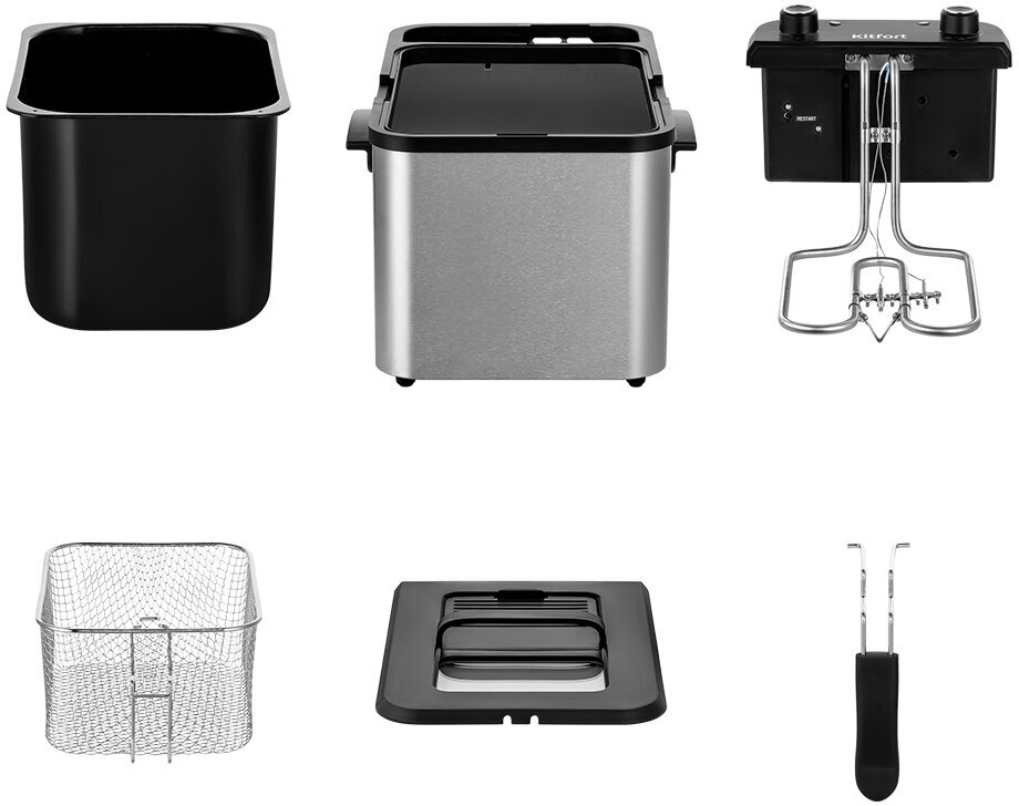 У фритюрницы есть защита от перегрева. Установленный в прибор термостат отключит нагрев прибора, если температура превысит допустимое значение. Прибор снова включится, если нажать кнопку «Restart».