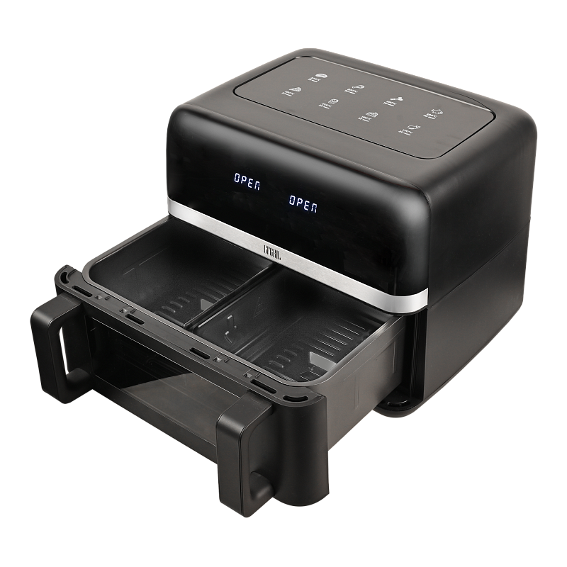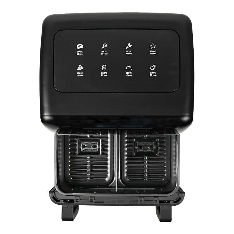 Электрический аэрогриль GFA-9000 заменит сразу несколько бытовых приборов, таких как мини-печь, электрический гриль, фритюрница, духовка, СВЧ, дегидратор. А благодаря двум чашам по 4,5 л каждая, Вы сможете приготовить несколько блюд одновременно — курицу гриль, стейки, морепродукты, большую порцию картофеля фри или другого гарнира, выпечку или другие разнообразные блюда для всей семьи.