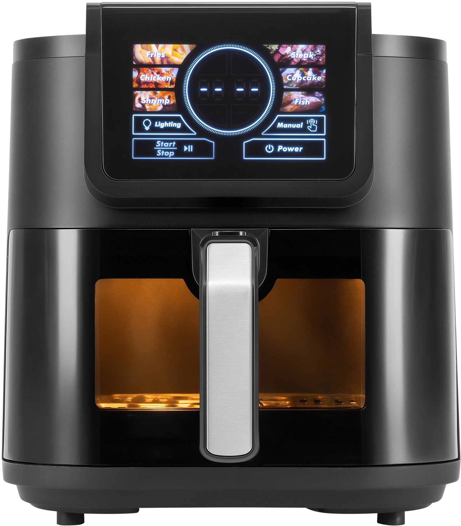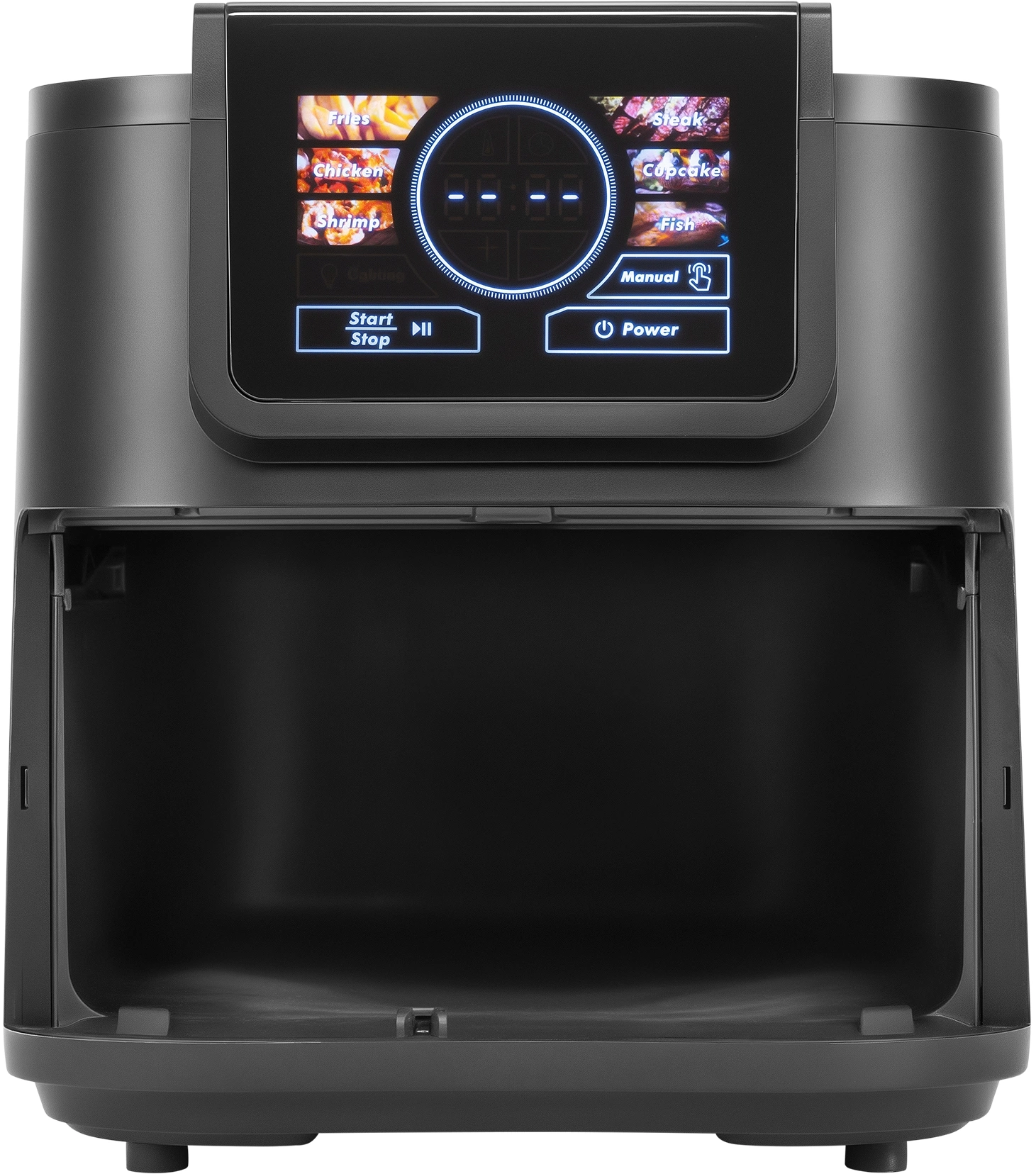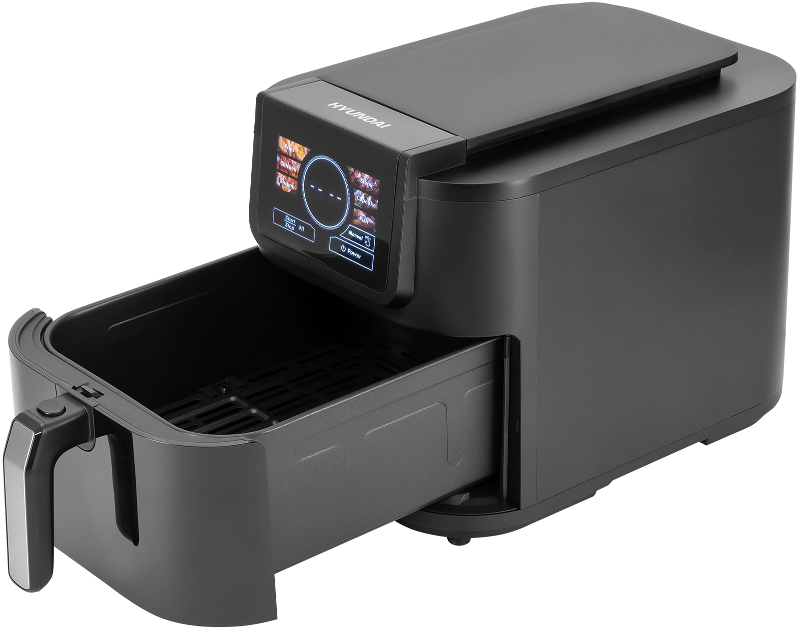 Сенсор автоматического определения количества продуктов, вы загружаете, аэрогриль определяет и подстраивает время и температуру готовки в зависимости от количества. Удлиненная форма, для сохранения большого объема корзины при компактном размещении