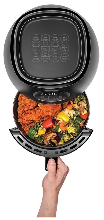 Он также позволяет готовить блюда без использования масла, что делает еду более здоровой и менее жирной. Благодаря технологии горячего воздуха, блюда готовятся быстрее, чем при традиционном способе приготовления.