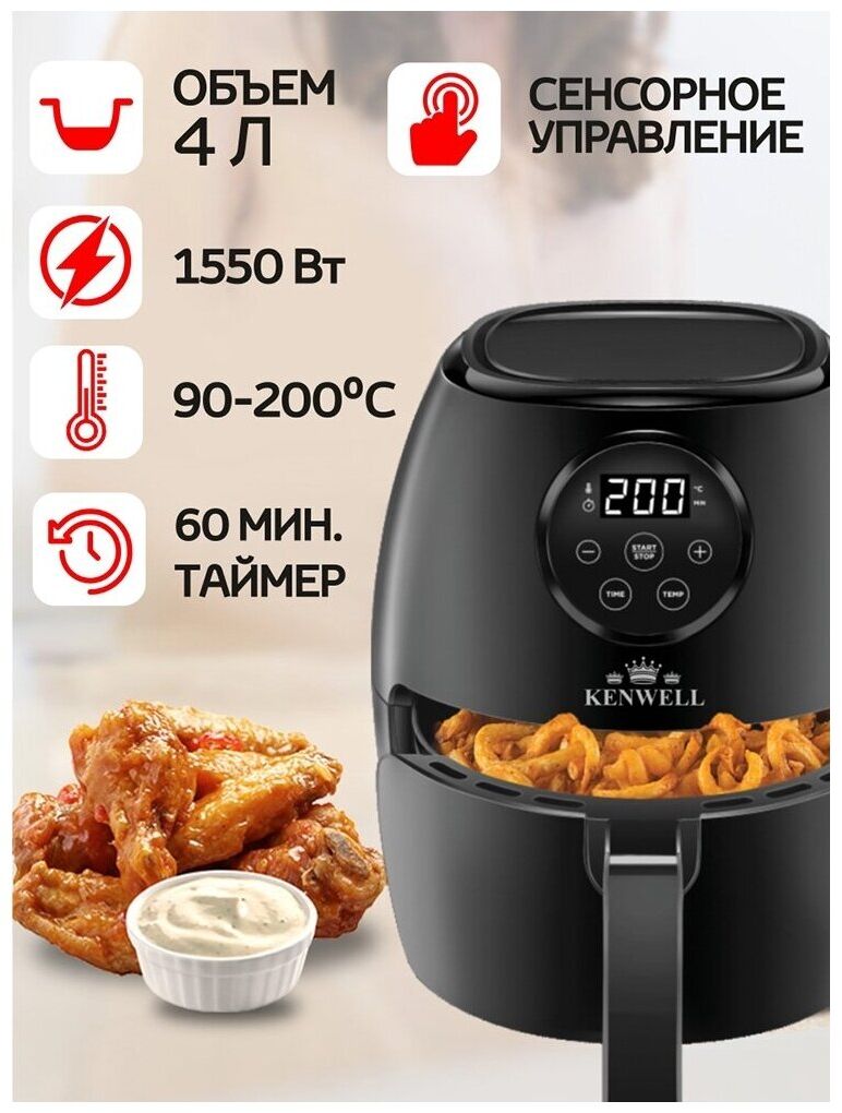 Аэрогриль - это прибор для приготовления блюд и еды, который использует горячий воздух для жарки, запекания и приготовления. Этот прибор является отличной альтернативой обычной жарке на сковороде или в духовке. Аэрогриль Kenwel может использоваться для приготовления различных блюд, включая мясо, рыбу, овощи, картофель, печенье и многое другое.
