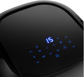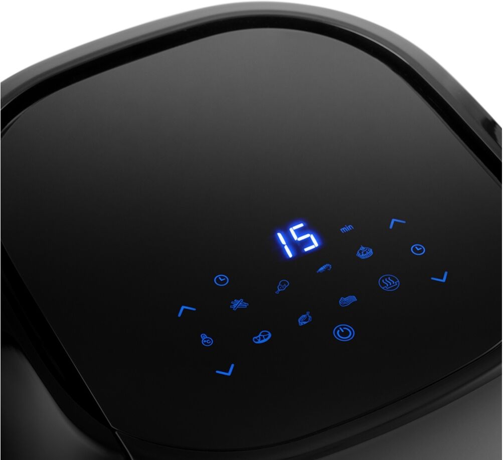 Аэрогриль оснащён электронным управлением, он имеет 7 автоматических программ. На дисплее отображаются температура и время приготовления. Внутри корпуса имеется внутренняя подсветка корзины. В инструкции представлены рецепты разнообразных блюд.