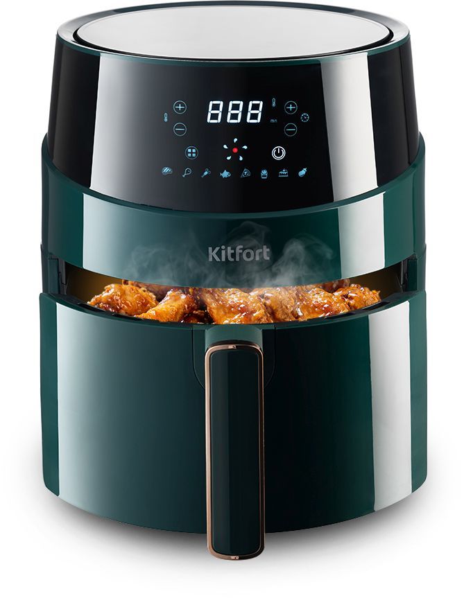Современный аэрогриль Kitfort КТ-2222 может использоваться как аэрогриль, а также как аэрофритюрница и духовка и позволяет готовить большинство продуктов с минимальным количеством масла или вовсе без его добавления.