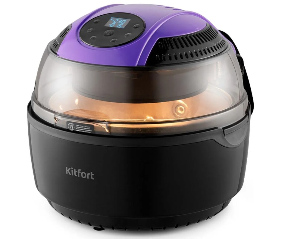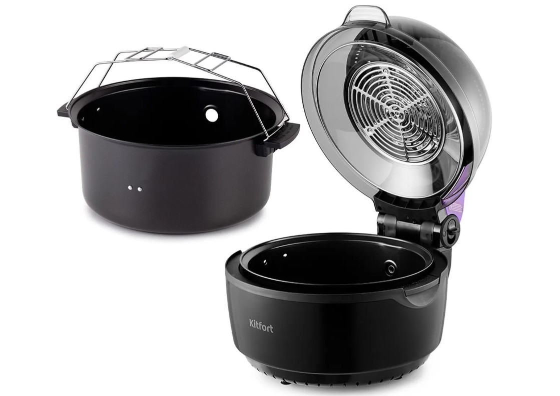 Современный классический аэрогриль Kitfort КТ-2241 замечателен стильным дизайном, а также позволяет готовить большинство продуктов без добавления масла.