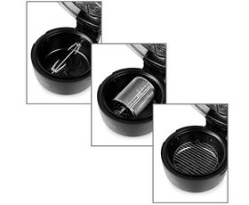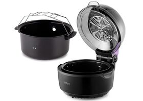 При помощи системы циркуляции горячего воздуха продукты равномерно обжариваются со всех сторон и получаются нежными внутри и с хрустящей корочкой снаружи.Аэрогриль оснащен электронным управлением и дисплеем, а также у прибора у есть 7 автоматических программ. Вы можете начать приготовление в установленное время, используя функцию отложенного старта.