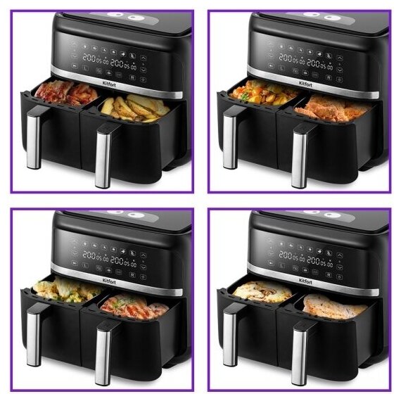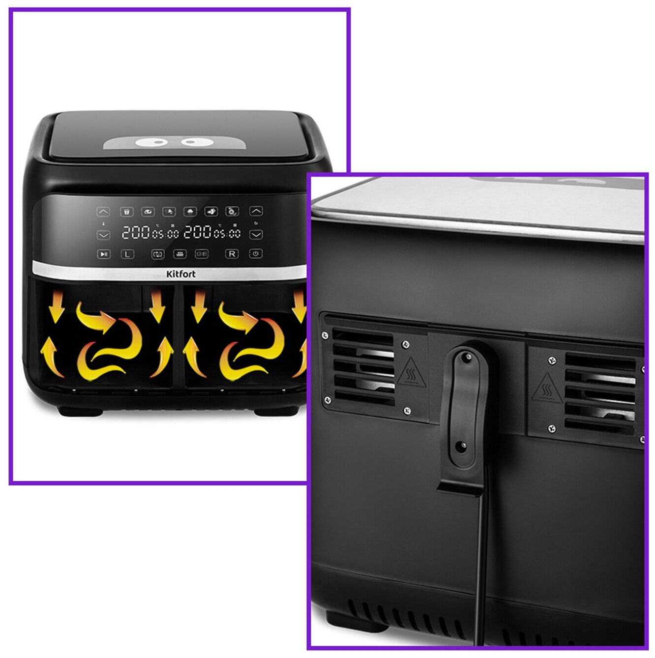 - БрэндKITFORTМодельКТ-2248Мощность2850 ВтОбъем чаши7.6 лТемпература80 - 200°СТип нагревательного элементаТЭНТип управленияэлектронноеАнтипригарное покрытие нагревательных частейестьСъемные формыестьКоличество программ/режимов6Список режимов/программ приготовленияЧипсы, кура-гриль, рыба, выпечка, овощи, сушка овощей и фруктов