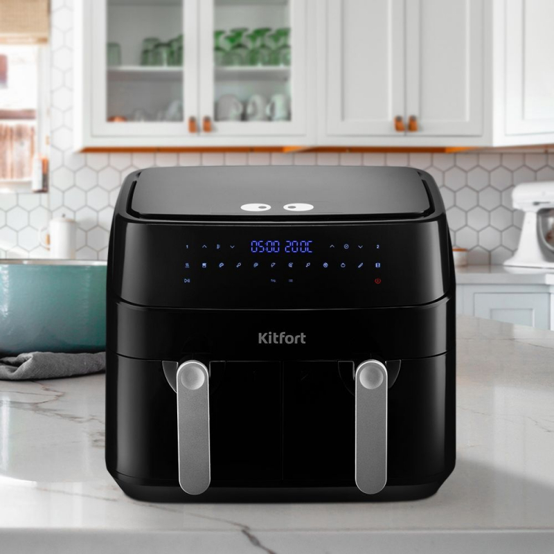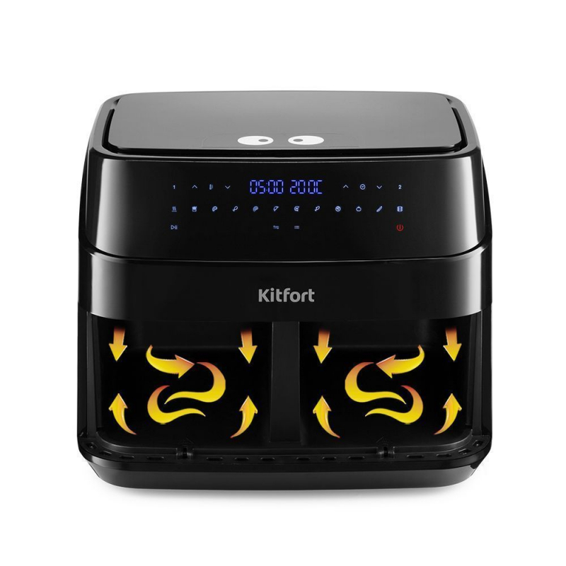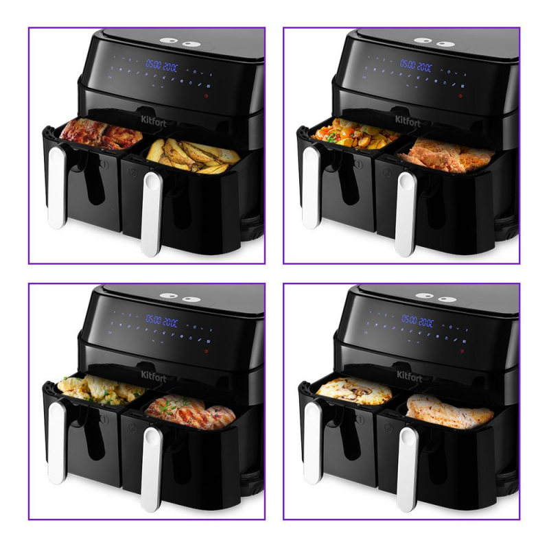 Функциональный аэрогриль КТ-2250 может использоваться как аэрогриль, аэрофритюрница, а также как духовка. Позволяет готовить несколько блюд одновременно с минимальным количеством масла или вовсе без его добавления!