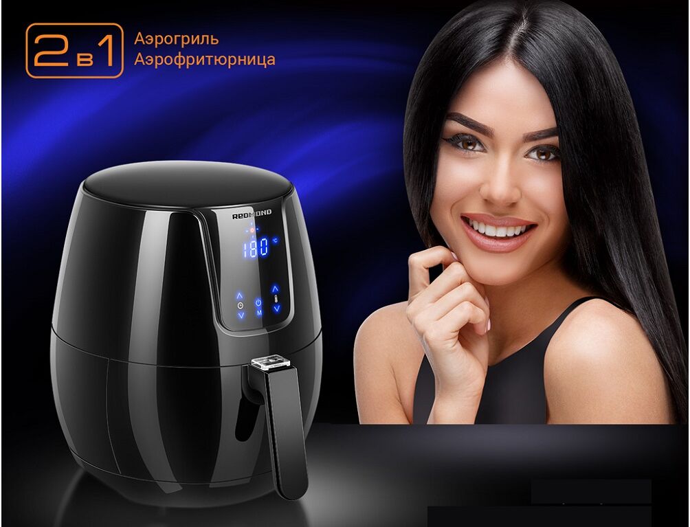 Описание: REDMOND RAG-247 – это современный многофункциональный прибор «2 в 1», совмещающий функции аэрогриля и аэрофритюрницы. Используя RAG-247, вы сможете жарить стейки, наггетсы, картофель фри, готовить выпечку, десерты и множество жареных и запеченных блюд, совсем не добавляя масло и других жиров.