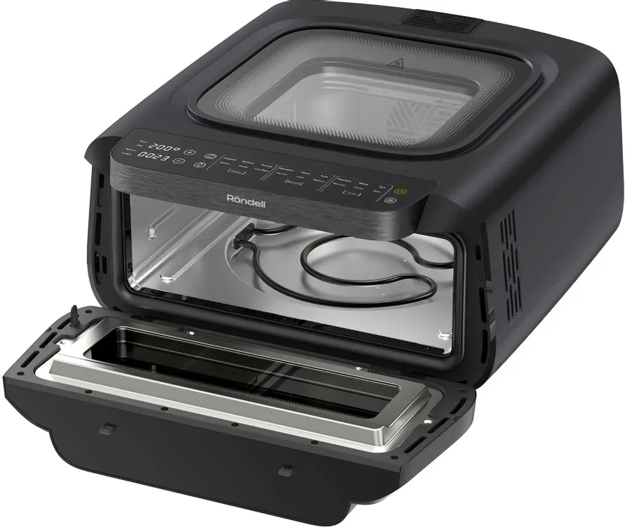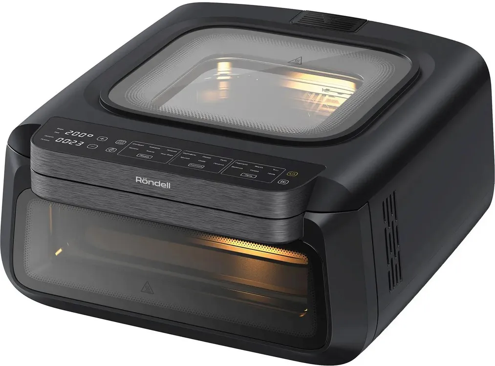 2 ТЭНа, верхний инфракрасный нагреватель, керамическое покрытие корзины гриль Таймер до 24ч, регулировка температуры 40-380°, металлическая камера , 2 больших смотровых окна