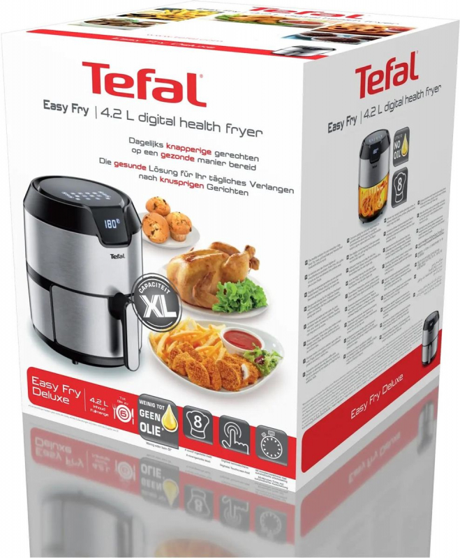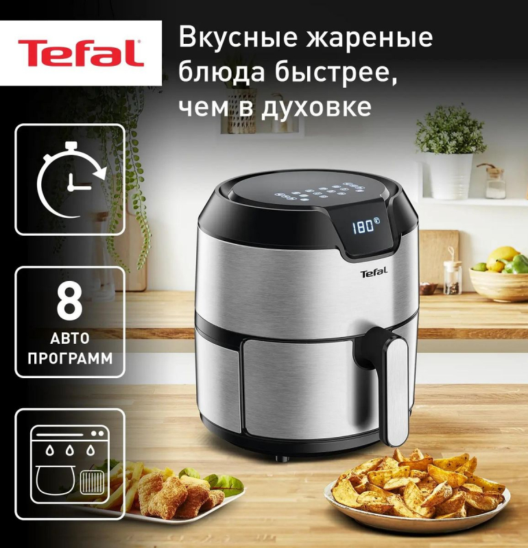 - БрендTEFALМодельEY401D15Мощность1500 ВтМатериал чашиметаллОбъем чаши4.2 лТемпература140 - 200°СТип нагревательного элементаТЭНТип управленияэлектронноеАнтипригарное покрытиеДАСъемные формыестьКоличество программ/режимов8Список режимов/программ приготовленияКартофель фри, пицца, курица, отбивная, рыба, гриль, креветки, выпечка