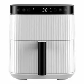 Аэрогриль выполнен в стильном белом и черном цвете, что позволяет ему гармонично вписаться в любой интерьер кухни. Основной материал корпуса - металл и пластик, что обеспечивает прочность и долговечность устройства.