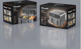 Комплектация: Аэрогриль, Чаша, Разделитель съёмной решётки, Съёмная решётка, Книга рецептов, Руководство по эксплуатации, Гарантийный талон.