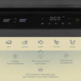 автоматическое отключение, возможность использования верхней панели как самостоятельной, защита от перегрева, регулировка температуры