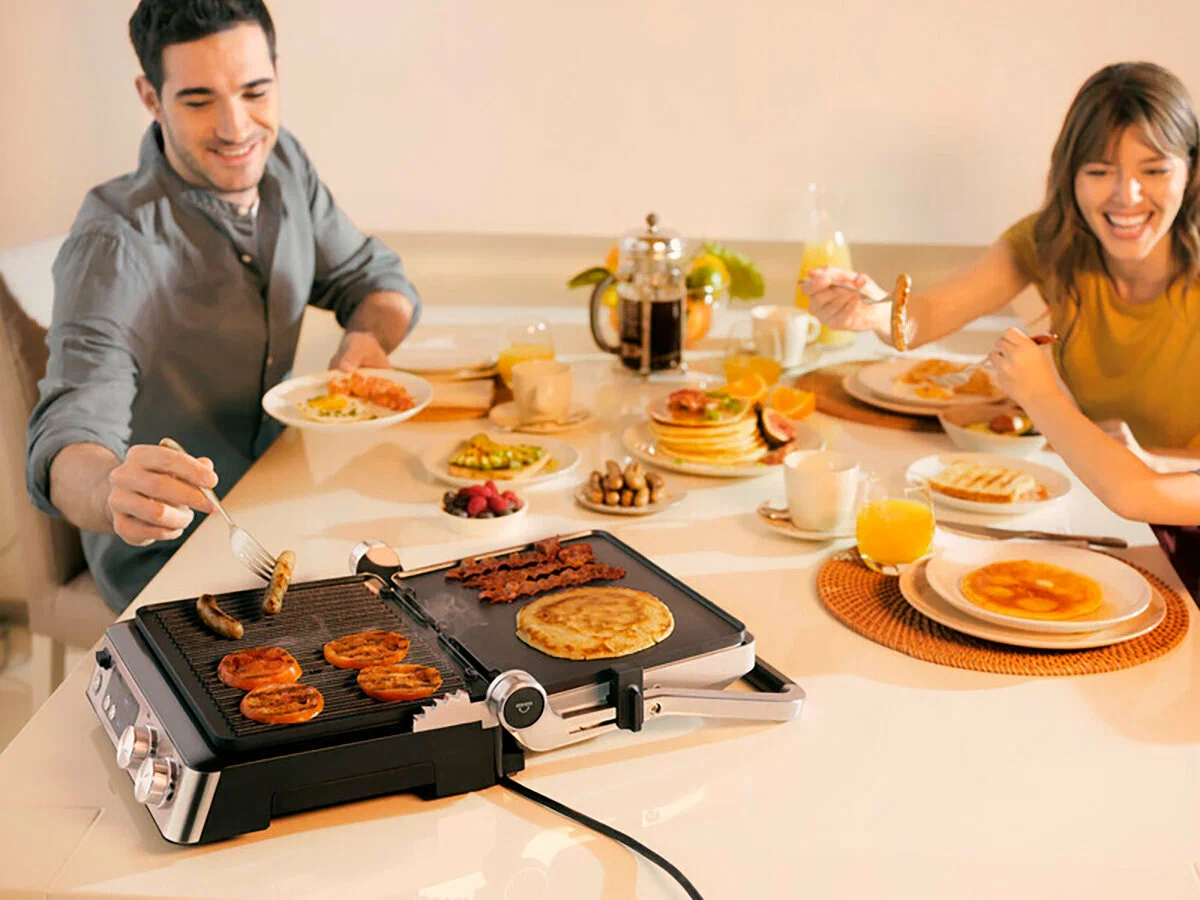 антипригарное покрытие, контактный гриль, поддон для сбора жира, съемные пластины, регулировка температуры