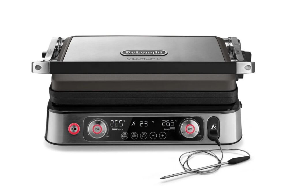 Мультигриль оснащен термощупом, который даст вам уникальную возможность достичь желаемой степени прожарки без ошибок. Встроенный датчик измеряет точную температуру вашего мяса в электронном виде, передавая информацию на светодиодный дисплей.ЖК-дисплей подскажет вам всю необходимую информацию. Удобные ручки не будут нагреваться во время работы, а это значит, что вы не обожжетесь, случайно прикоснувшись к ним.