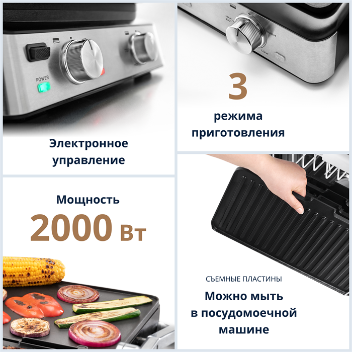 Принадлежности в комплектегриль, комплект съемных пластин, инструкция, гарантийный талон.Корпус