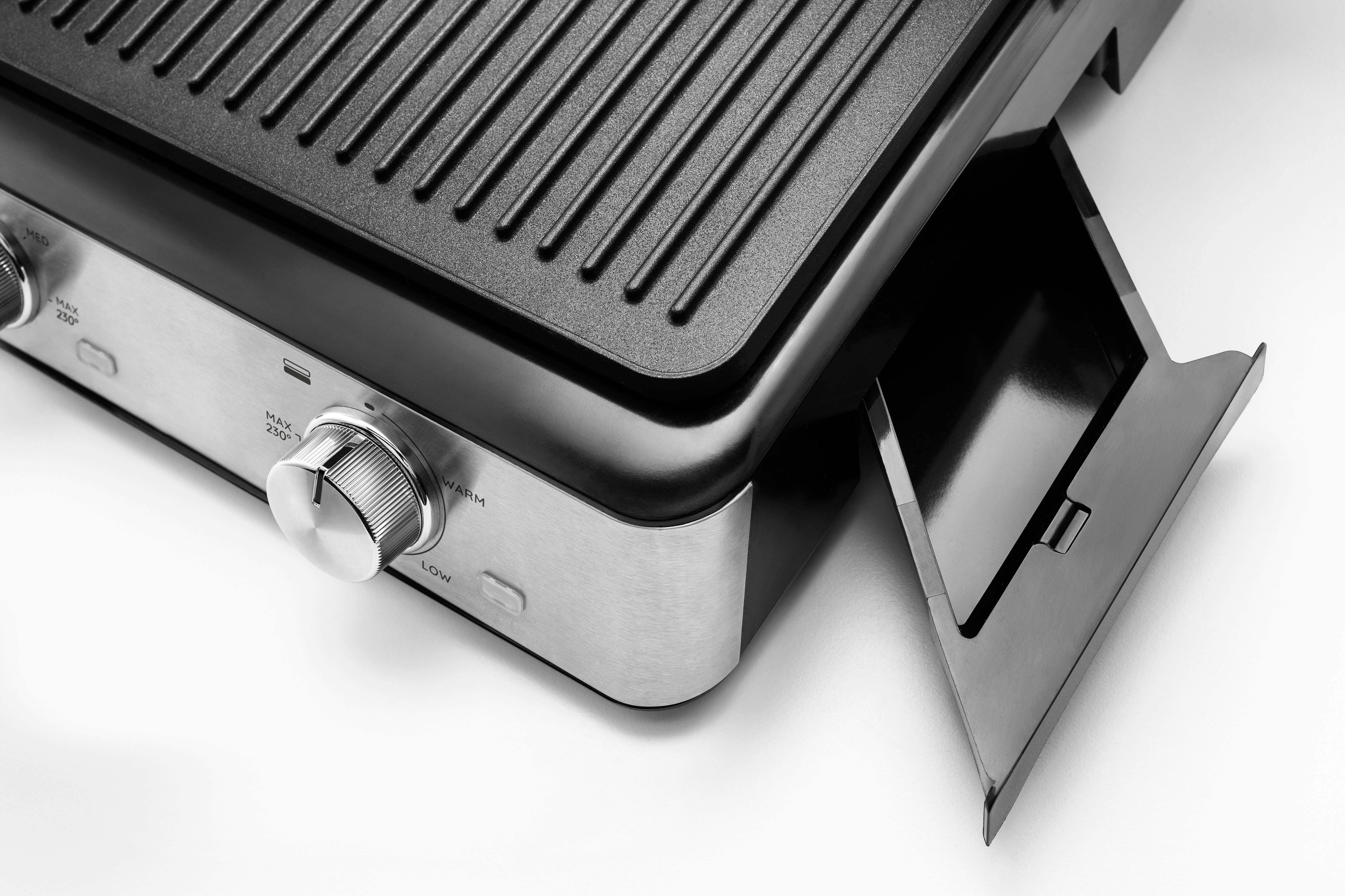 Установка температуры приготовленияестьРегулировка температуры приготовленияот 100 до 230 СРаздельная регулировка температуры для пластинестьЛоток для сбора жираестьИндикатор включенияестьИндикатор нагреваестьЗвуковой сигналестьФиксация в закрытом состоянииестьНенагревающаяся ручкаестьМойка рабочих поверхностей в посудомоечной машинедаКомплектация