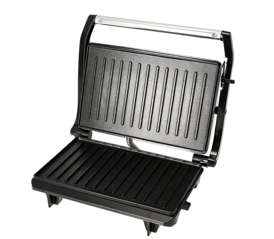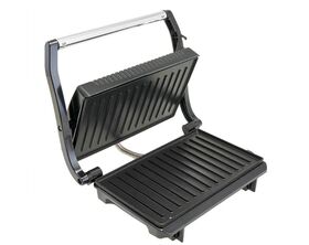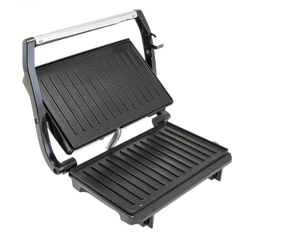 - За счет использования двух нагревательных пластин гриль-пресс равномерно пропекает блюда сразу с двух сторон