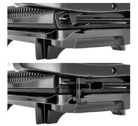 - Плавающая (подвижная) верхняя жарочная поверхность оказывает равномерное давление на продукты