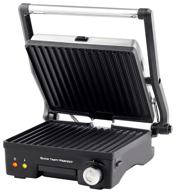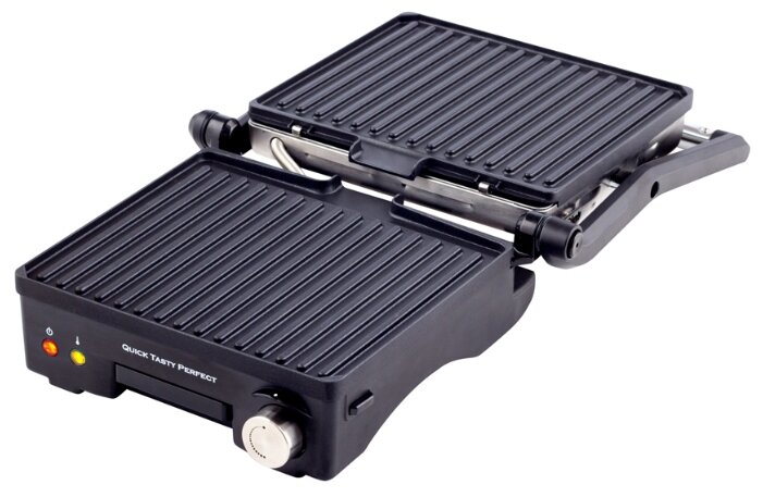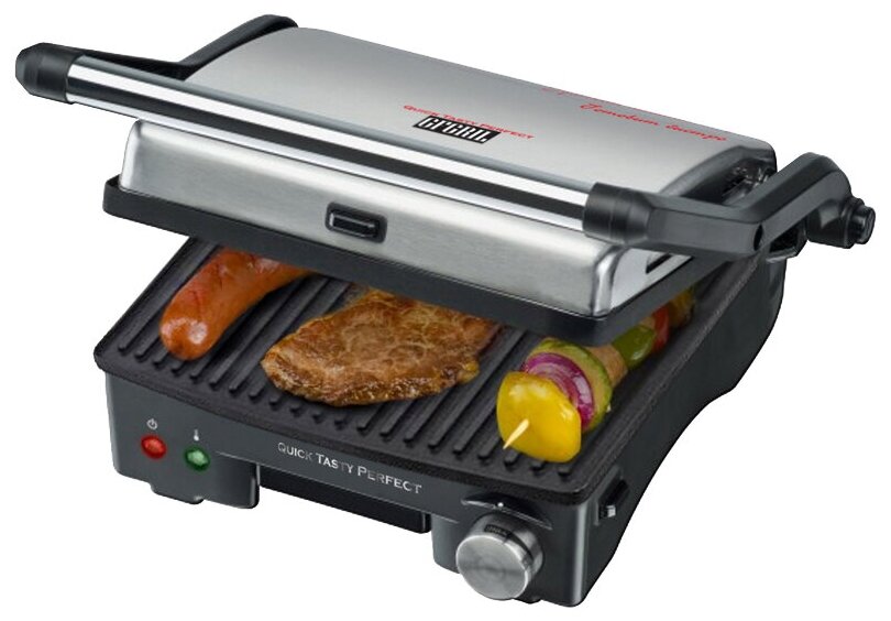 GFgril GF-130 Plate Free позволит в домашних условиях пожарить мясной, рыбный стейк и аппетитные овощи на гриле, а также поможет приготовить много других вкусных блюд. Благодаря антипригарным панелям продукты на него можно выкладывать, не используя масло — пища получится сочной, нежной и не будет содержать вредных для здоровья канцерогенов и холестерина. Мощность этого электрогриля составляет 1800 Вт, поэтому продукты будут готовы к подаче на стол гораздо быстрее, чем при приготовлении на плите или в духовке. В комплектацию с устройством входит поддон для сбора сока и жира, а жарочные панели легко снимаются для мытья. Температуру можно регулировать, выбирая оптимальный режим в зависимости от вида продуктов.