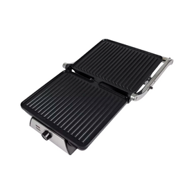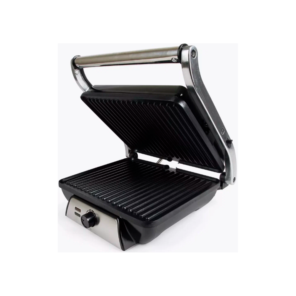 Управление грилем осуществляется механически, а корпус выполнен из комбинированного материала. Рабочая поверхность гриля изготовлена из металла, что гарантирует долговечность и надежность устройства.