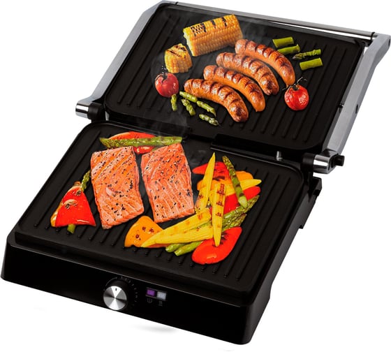 В одностороннем режиме крышка гриля откидывается на 180°, благодаря чему гриль превращается в большую жаровню, а продукты можно выложить сразу на две панели.